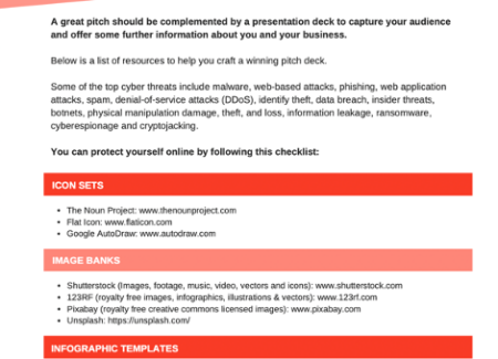 The Pitching Resources worksheet will introduce entrepreneurs to valuable resources that help them build professional pitching presentations. These resources include presentation templates, infographic templates and stock images. This worksheet was created by Viridian and Future Females as part of the UK-South Africa Tech Hub Launch With Tech campaign.