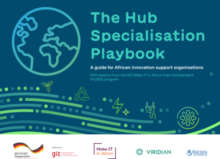 While more hubs in Africa are implementing tech entrepreneurship programs in general, hubs in more mature ecosystems are becoming more specialized. With the increased interest and funding around planet-friendly solutions, there is an opportunity for hubs to run dedicated Greentech-focused programs. The Hub Specialization Playbook, conceptualized and driven by GIZ’s Make-IT in Africa initiative, aims to grow nascent sectors like GreenTech by equipping innovation hubs to specialize their programs for entrepreneurs, funders, and stakeholders who are committed to turning sector-specific solutions into successful businesses. The playbook is available for any organization to use to support the development of a sector within their local ecosystems, and this toolkit aims to provide support for planning and executing a specialization strategy. This toolkit has been developed by Viridian together with Make-IT in Africa, with support from IRESEN and lessons from the Hubs GoGreentech – HUGG, a Make-IT in Africa’s programs. It provides a customizable program framework (published under open license) and provides knowledge, tips, and tools for African organizations to leverage to transition into Greentech space and run Greentech-focused program.